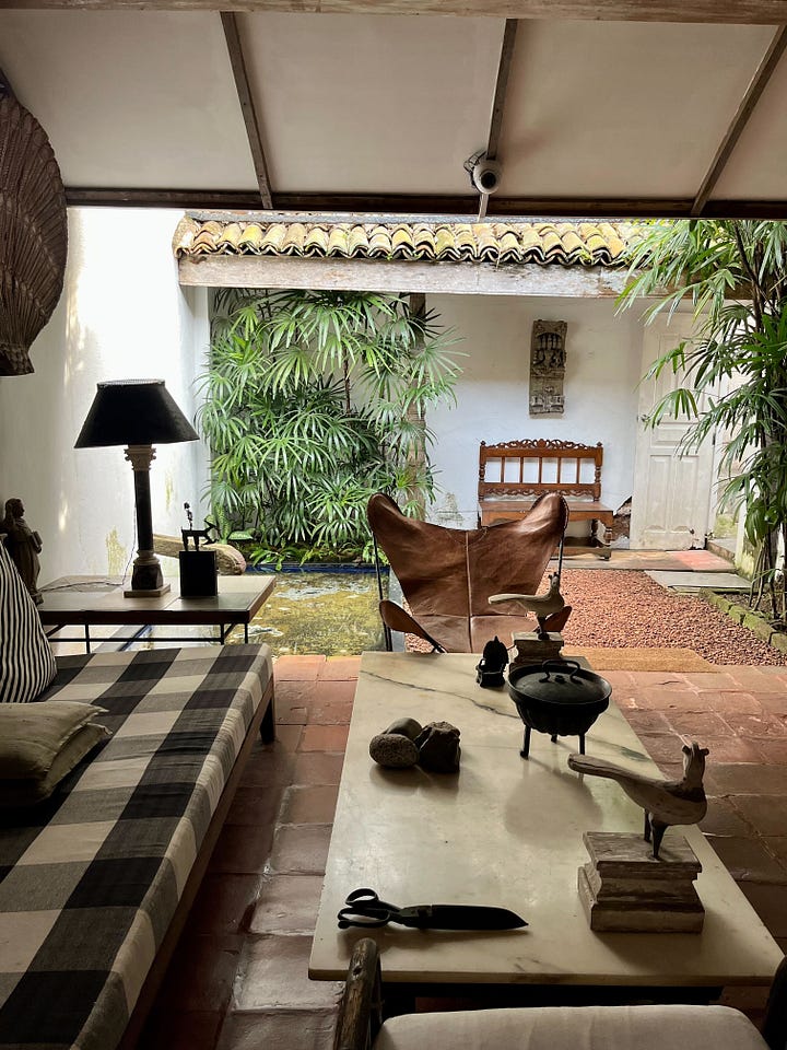 The interiors are remarkable: unmistakably Sri Lankan with an emphasis on indoor-outdoor living, smooth white walls, and breezy fabrics. Paintings, batik, and drawings from friends covered the walls, and the furnishings were eclectic in their time period and style (very contemporary in the mix and match). While it felt distinctly of its place, I couldn’t help but think of the expansion and contraction in Frank Lloyd Wright’s homes while walking through the Bawa residence. It was inviting and warm—and you can even stay there if you’d like (be forewarned: there’s a year-long waitlist).